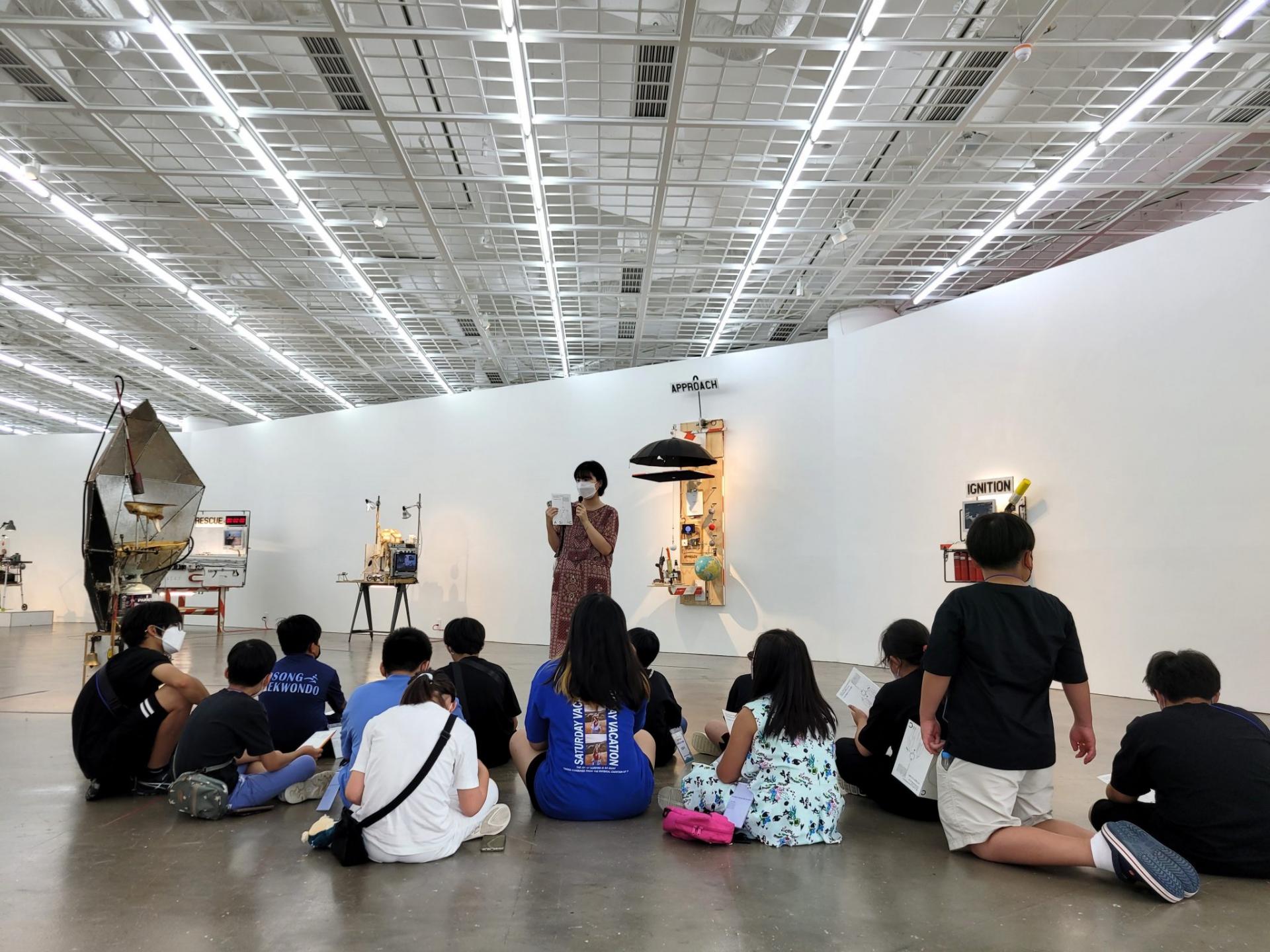 지난 8월 1일, 26명의 초등학생이 서울의 아트선재센터를 찾았습니다. 이들은 청주시에 위치한 대우꿈동산, 봉명지역아동센터 등을 이용하는 어린이들로, 톰 삭스의 《스페이스 프로그램: 인독트리네이션》 전시를 관람하기 위해 한 자리에 모였습니다.