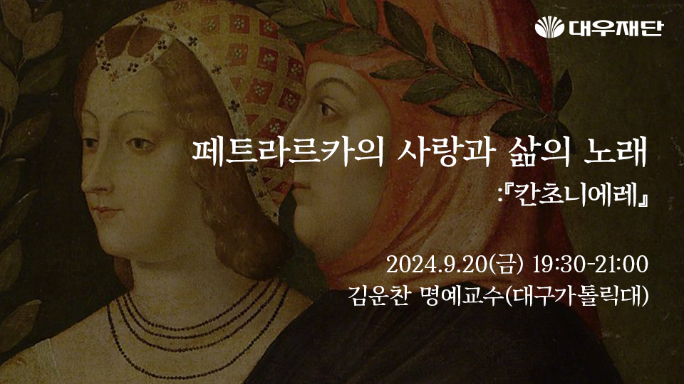 『칸초니에레』는 르네상스의 대표적 시인 프란체스코 페트라르카가 평생에 걸쳐 쓴 366편의 서정시 모음입니다. 원문을 번역해 대우고전총서를 집필하신 김운찬 대구가톨릭대학교 명예교수님께서 시대를 초월한 사랑 이야기를 전해주실 예정입니다.