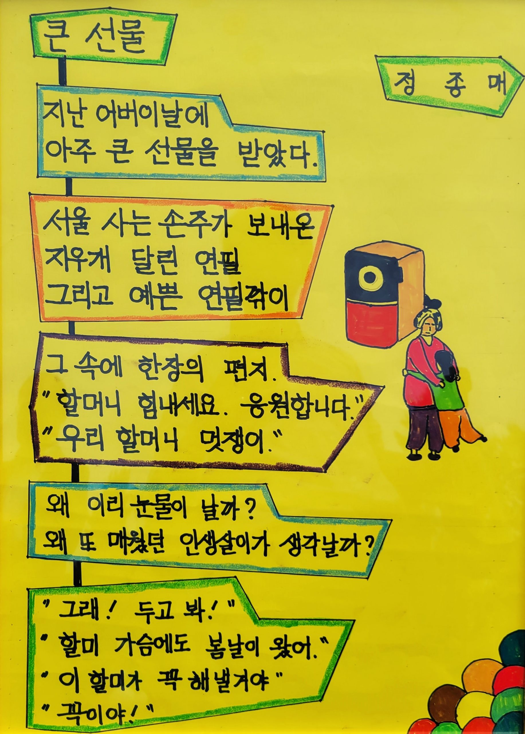 지난 6월 10일, 완도군 노화도에 위치한 대우재단 부속 행복나눔섬지역센터에서 마을 잔치가 열렸습니다. 이 날은 섬마을 어르신들이 그동안 갈고 닦아온 한글 실력을 뽐내는 시화전이 열리는 날이었습니다.