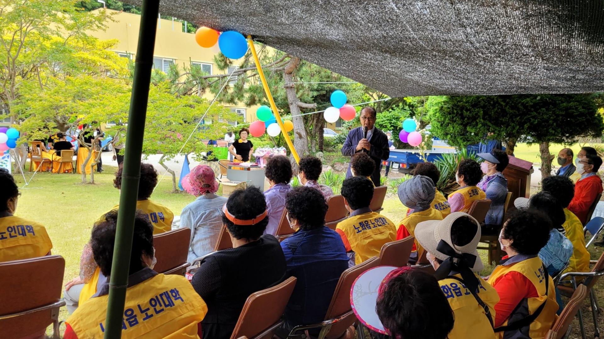 행사는 행복나눔섬지역센터 입소 단체인 섬사랑평생교육원에서 주최했고, 대우재단과 완도군청이 후원했습니다. 섬사랑평생교육원은 2009년부터 노화읍, 보길면, 소안면의 어르신들을 대상으로 한글을 읽고 쓰는 수업을 진행하고 있습니다.